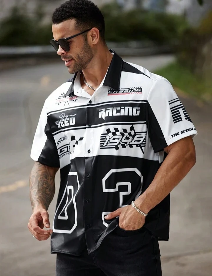 🏎 Striking Black & White Design – Bold color-blocking with racing graphics.