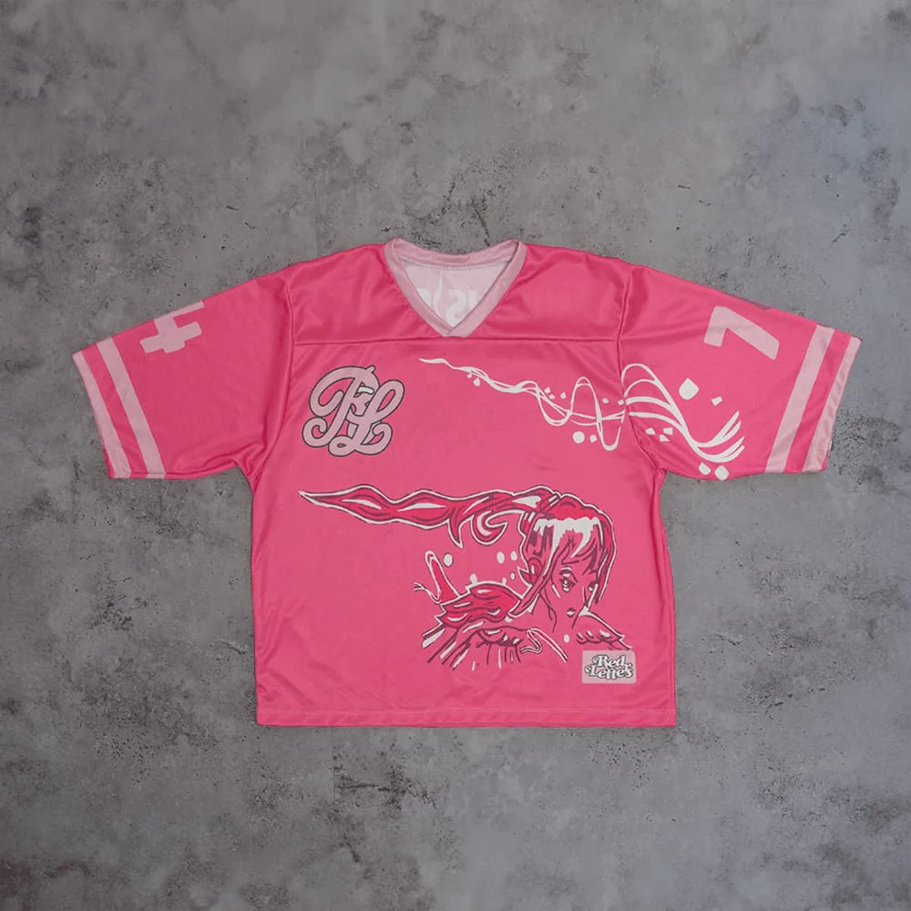 Dare to stand out with the WHO IS SUKI? Jersey, a bold and stylish statement piece for trendsetters. Designed in a striking hot pink with anime-inspired graphics, this jersey merges streetwear and Y2K aesthetics effortlessly.